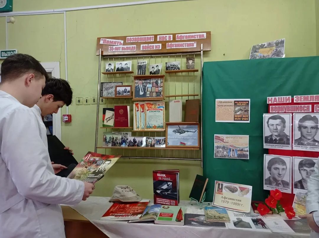 К этой памятной дате в читальном зале библиотеки оформлена книжная выставка — память и проведён информационный час с учащимися группы 2ЛД-3 «Афганистан – наша память».