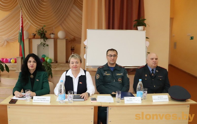 Информацию по темам изложили Тереса Вацлавовна Юшкевич, а также начальник отдела охраны правопорядка и профилактики Слонимского РОВД Андрей Иванович Прокурат, инспектор Слонимской районной энергогазинспекции Сергей Николаевич Кононович и заместитель начальника Слонимского РОЧС Юрий Михайлович Булыка.