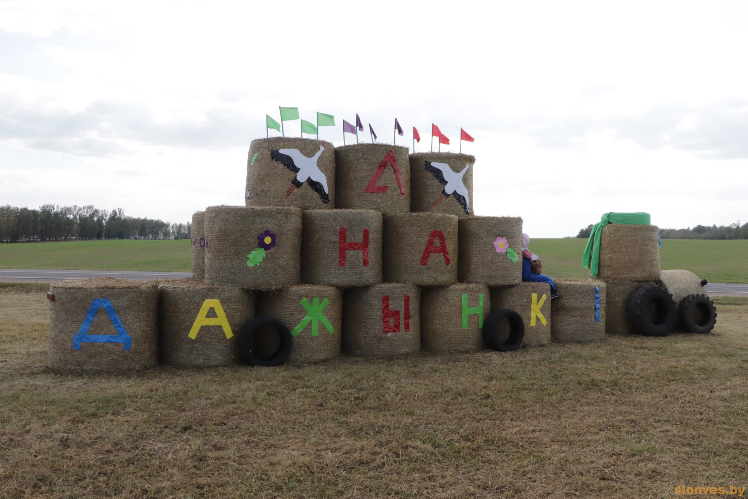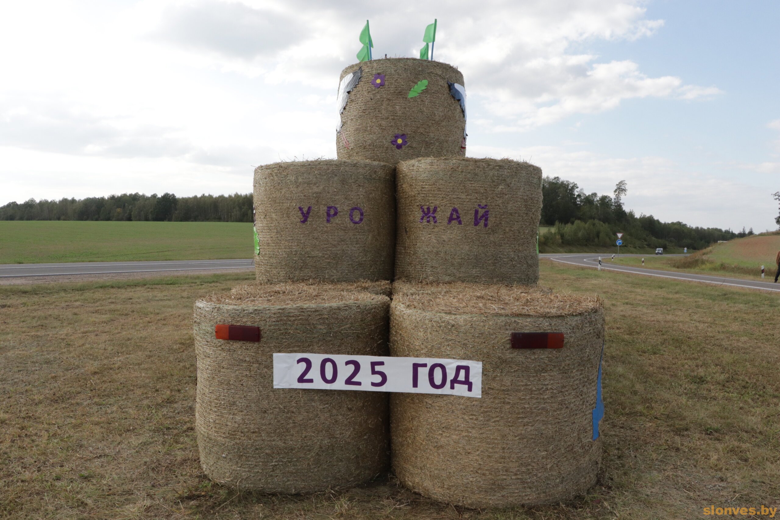 В эти дни едущие по дорогам Беларуси водители могут любоваться разнообразными арт-объектами из соломы, которые местные сельскохозяйственные предприятия устанавливают к областным «Дожинкам-2025».