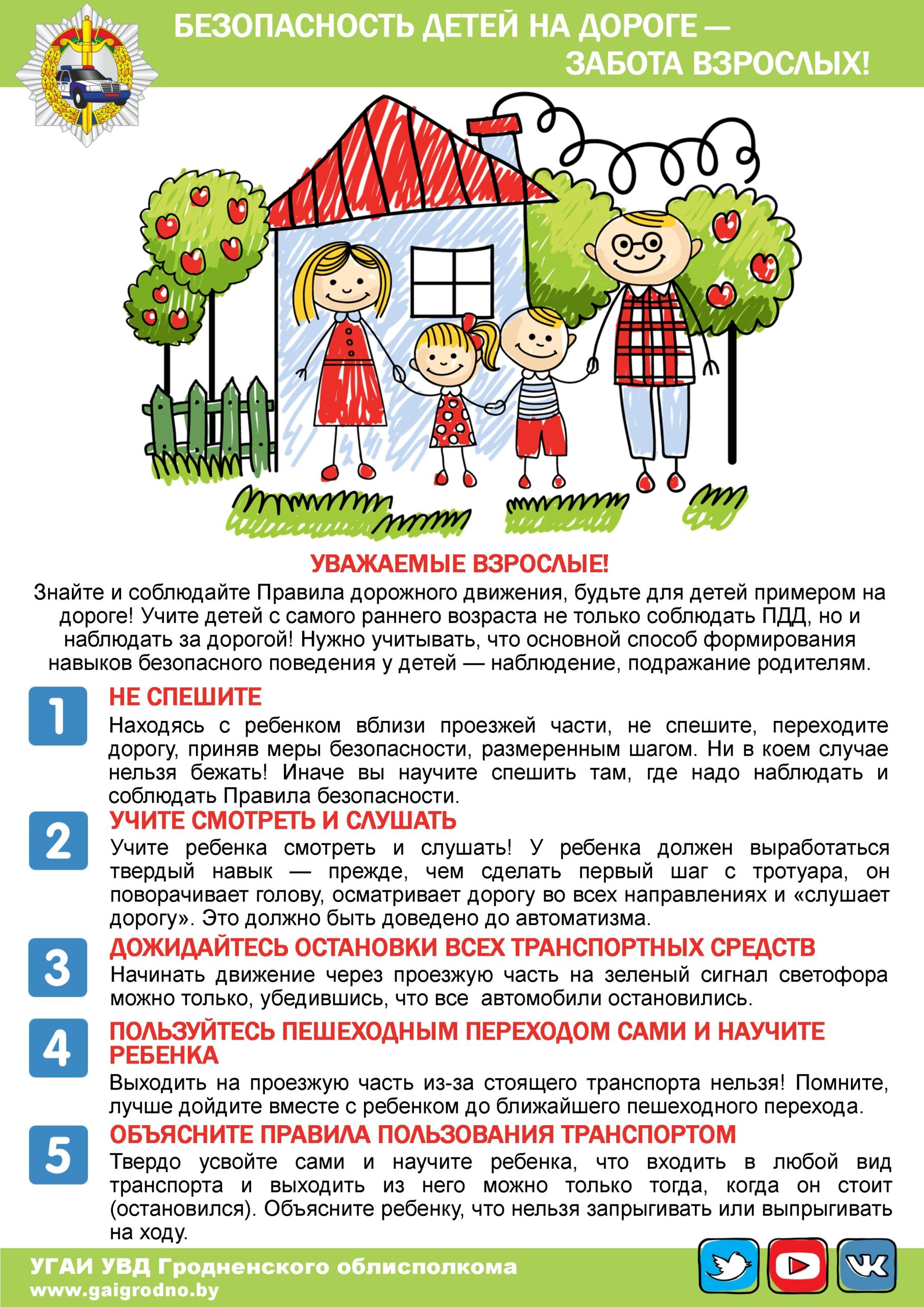 Находясь с ребенком на проезжей части, не спешите, переходите дорогу размеренным шагом. Иначе вы научите спешить там, где надо наблюдать.