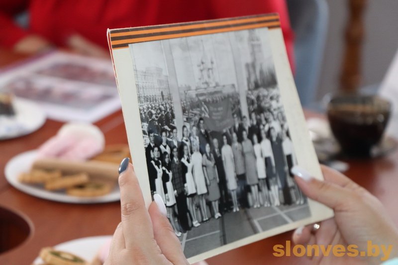 Галина Викторовна Сазонкина принесла на встречу алый пионерский галстук, поделилась яркими моментами из своей пионерской и комсомольской юности, презентовала сборник материалов «Острова патриотической памяти». Галина Владимировна Борисик пришла с комсомольским билетом и фотографией, где в Москве у Знамени Победы ей вручают очень высокую награду – Грамоту ЦК ВЛКСМ за успехи в работе, а трудилась она в то время в горкоме комсомола. Людмила Степановна Вадейко стояла у истоков БРСМ в Слониме, была первым секретарем организации. В своем выступлении она сделала акцент именно на этом периоде.