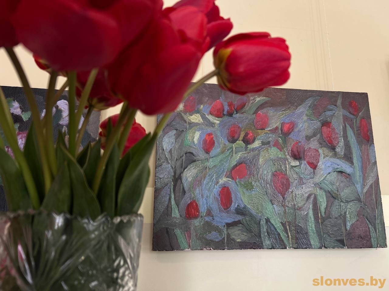 «Когда разбирала работы Димы, нашла много скрученных холстов – среди них оказалось немало сильных произведений. Захотелось сохранить их, систематизировать, сделать каталог. Когда часть полотен натянули на подрамники, художники высоко оценили творчество сына – так и появилась идея, которую многие поддержали и помогли реализовать».