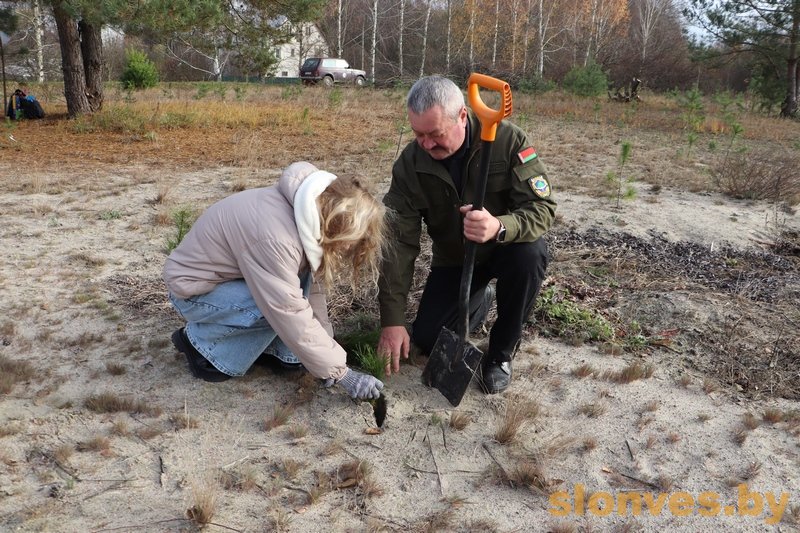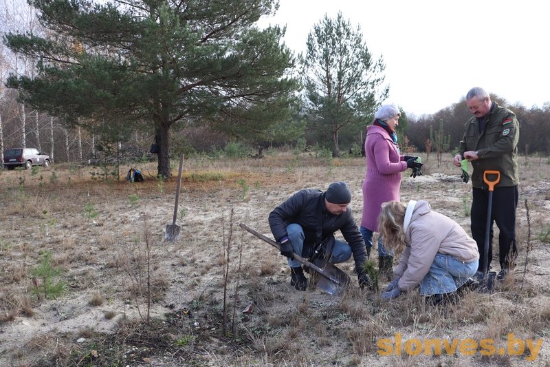 Школьники, воспитанники военно-патриотического клуба «Форпост» ГУО «Средняя школа 2 г. Слонима», совместно со специалистом Слонимской городской и районной инспекции природных ресурсов и охраны окружающей среды Иваном Ивановичем Кринчиком, клириком Спасо-Преображенского собора иереем Павлом Моряковым, учителем истории Ириной Евгеньевной Радецкой, неравнодушными местными жителями и общественными экологами приняли участие в посадке молодых сосен и лип на пустыре неподалеку от Лабазовского водохранилища.