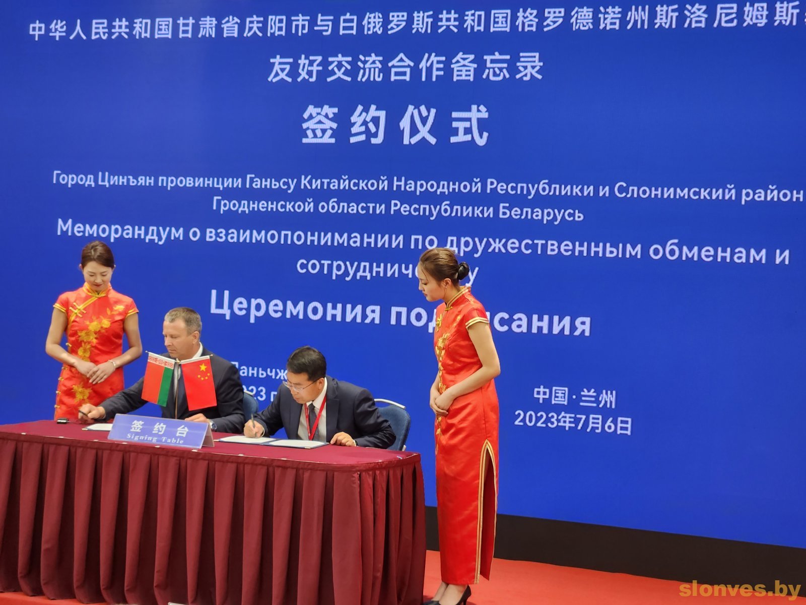 Церемония состоялась в рамках 29-й Ланьчжоуской торгово-инвестиционной международной выставки-ярмарки в провинции Ганьсу Китайской Народной Республики. Участие в ней принимает делегация Гродненской области во главе с губернатором Владимиром Караником. Также в ее составе – представители Слонимщины.