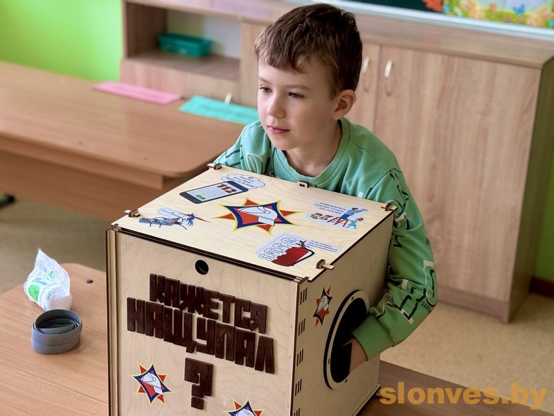 Урок безопасности прошел в формате увлекательной игры «Кажется, нащупал». Ребята на ощупь пытались определить, что находится в таинственной коробочке. От маски-самоспасателя до обычного коробка со спичками – каждый предмет так или иначе связан с работой спасателей или с потенциальной опасностью. Дети с увлечением пытались определить, что находится в коробке, а после того как предмет был назван, старший инспектор Екатерина Белько подробно рассказывала о его назначении и правилах использования.