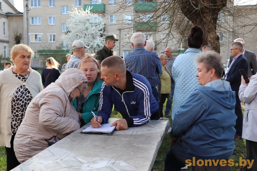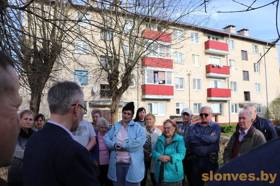 В минувший понедельник заместитель председателя райисполкома Тамара Николаевна Емелина, начальник отдела ЖКХ райисполкома Сергей Ярославович Шабан, директор Слонимского ГУП ЖКХ Сергей Васильевич Жилич встретились с жителями домов 8,10 по улице Черняховского, а также близлежащих домов 89 по улице Красноармейская и 1,3 по Водопроводному переулку, чтобы предложить им вариант благоустройства дворовой территории.