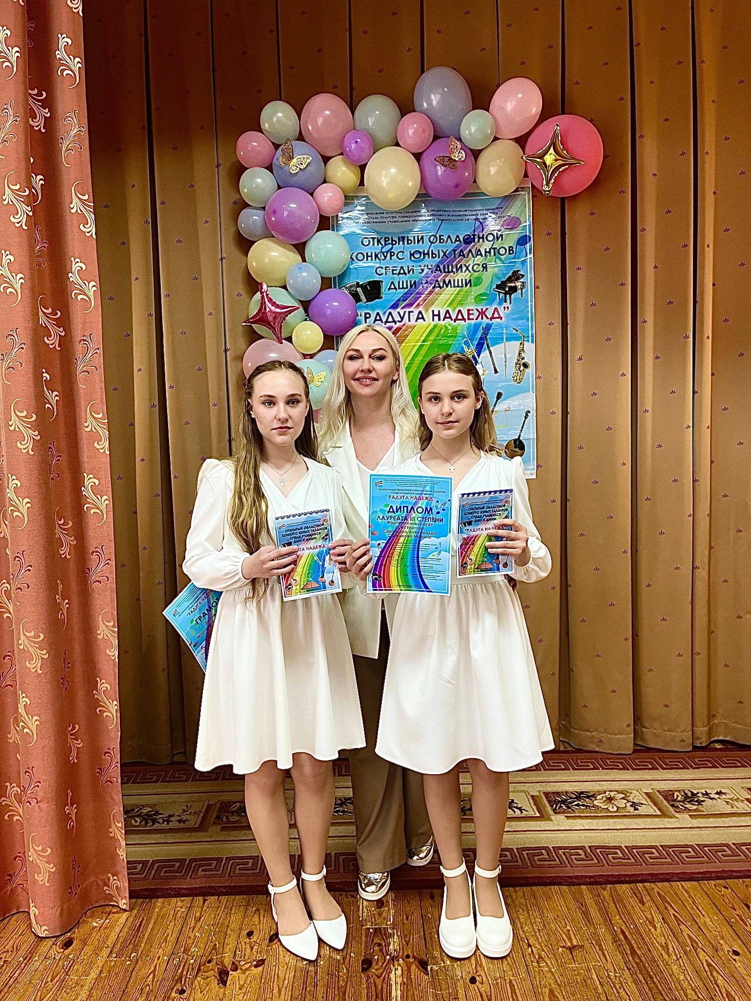 Фортепианный дуэт «Сестрички» (Солонковы Марина и Александра) стал лауреатом III степени, а педагог девочек М.В. Зинченко отмечена грамотой за высокое профессиональное мастерство.
