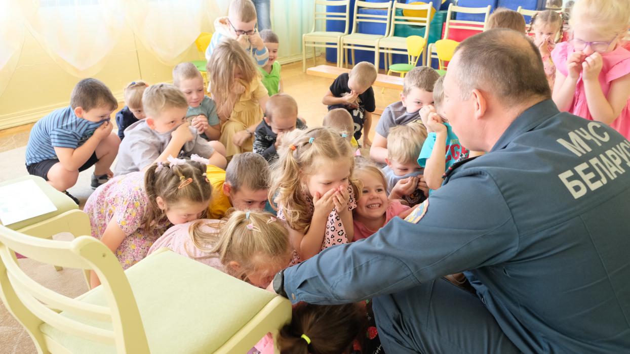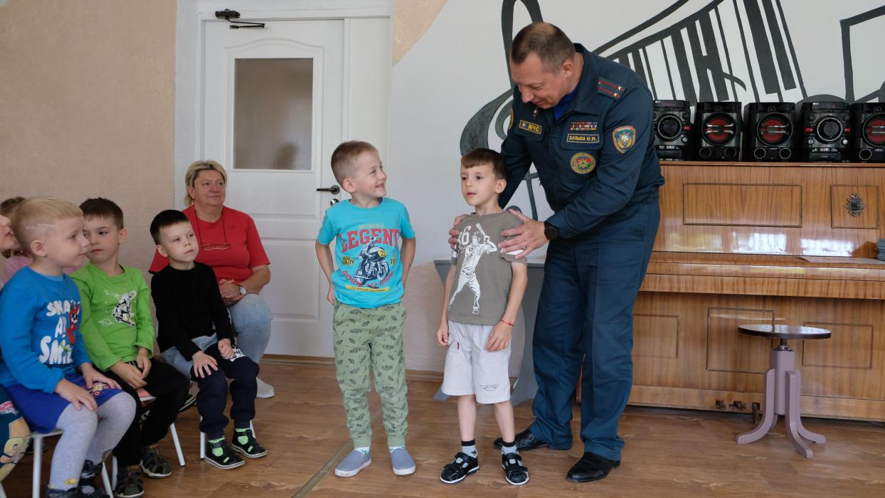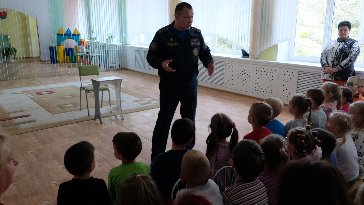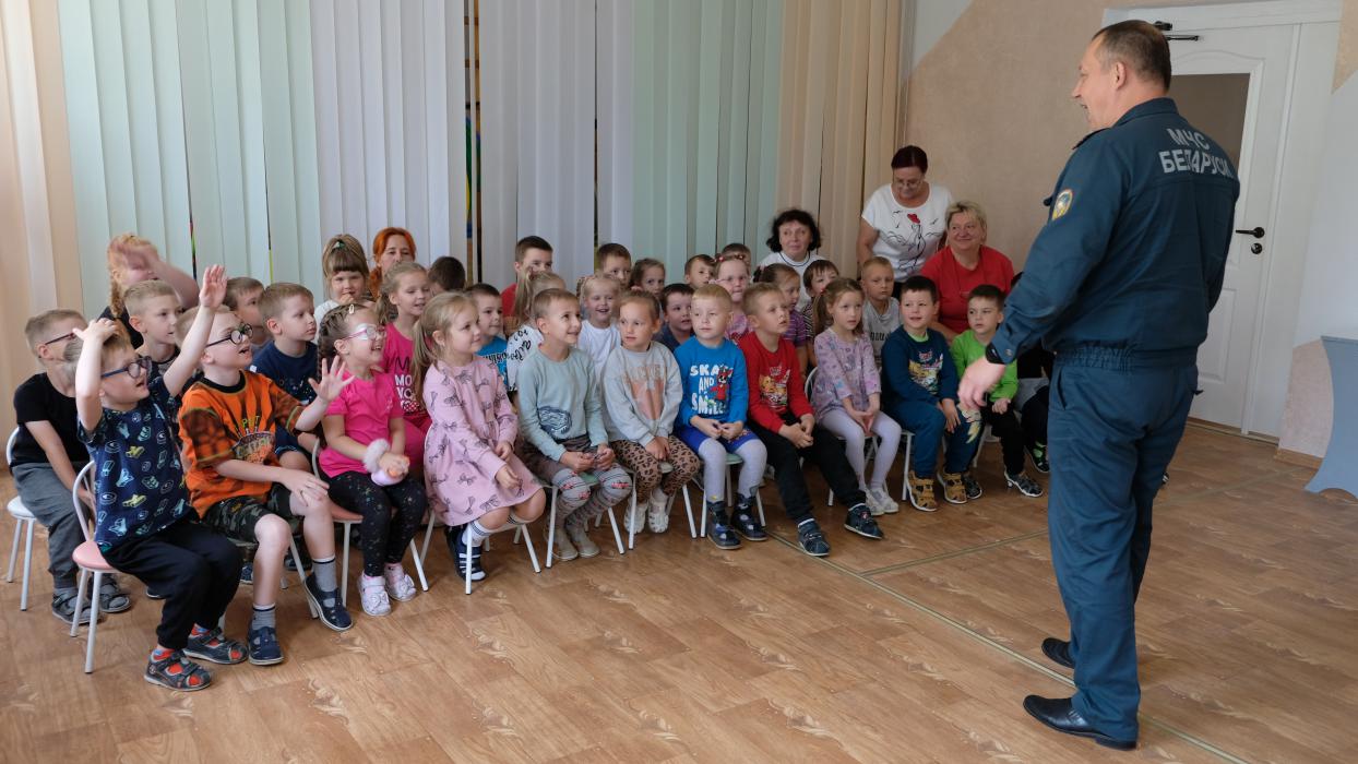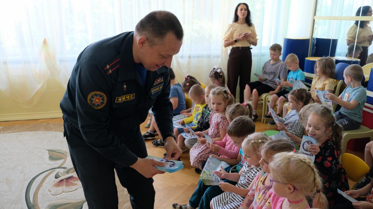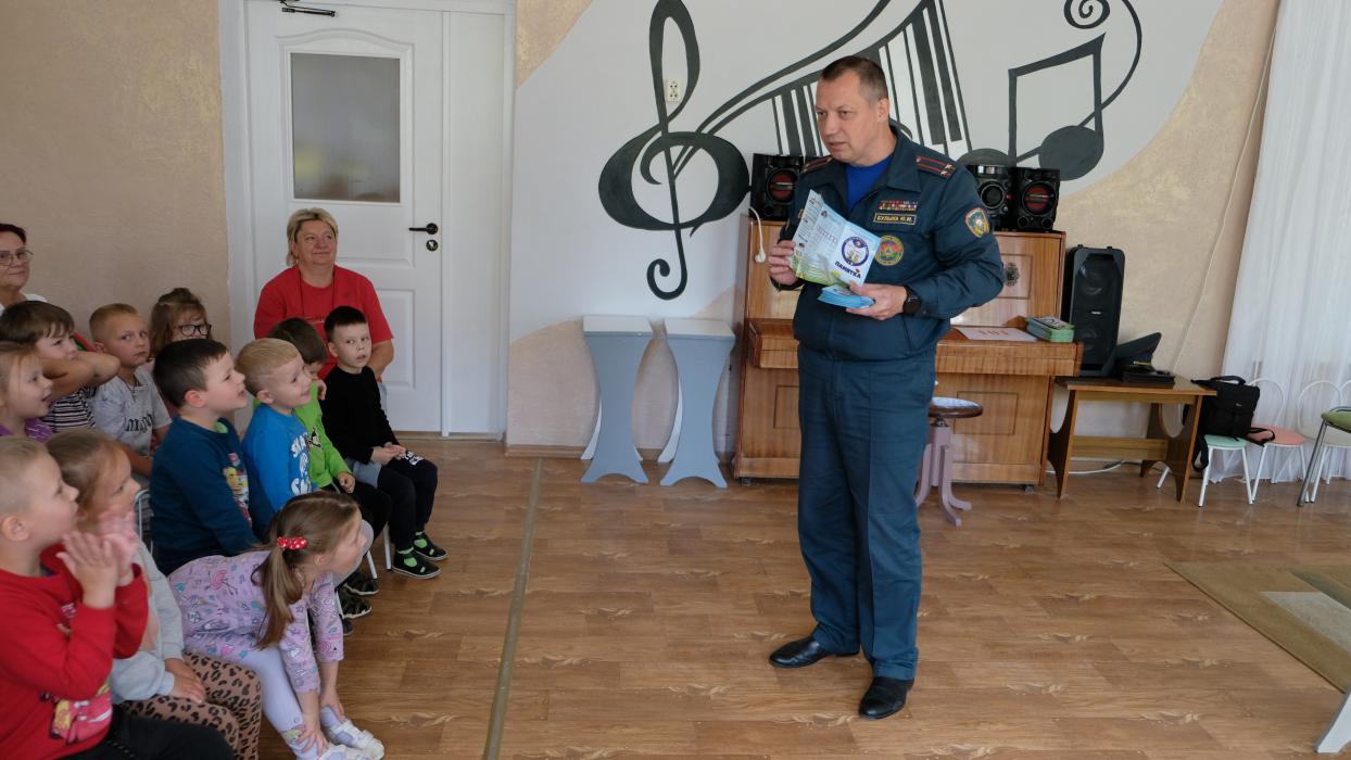 В последние дни лета заместитель начальника Слонимского райотдела МЧС Юрий Булыка провел обучающие занятия в санаторном и специальном детских садах города.