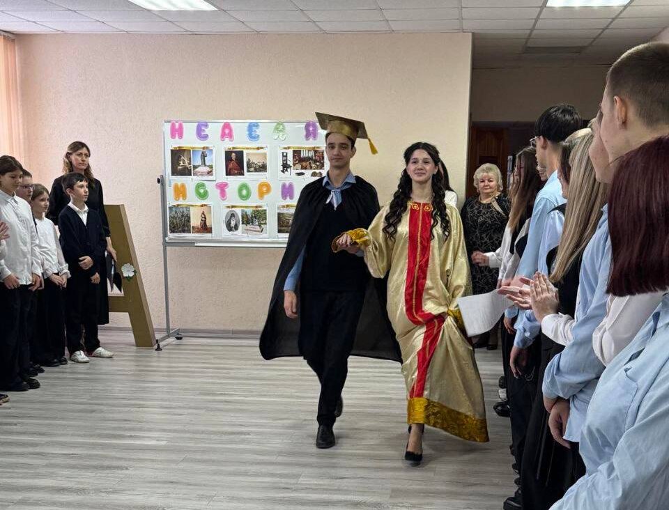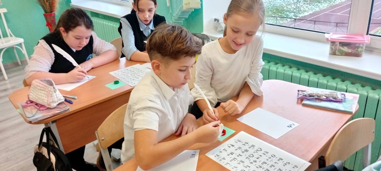Учащиеся 5 классов знакомились со старославянской письменностью и с восторгом учились писать настоящим гусиным пером. Шестиклассники погрузились в мир исторической книги, а среди учеников 5–6 классов прошел конкурс на лучшую тетрадь по истории.
