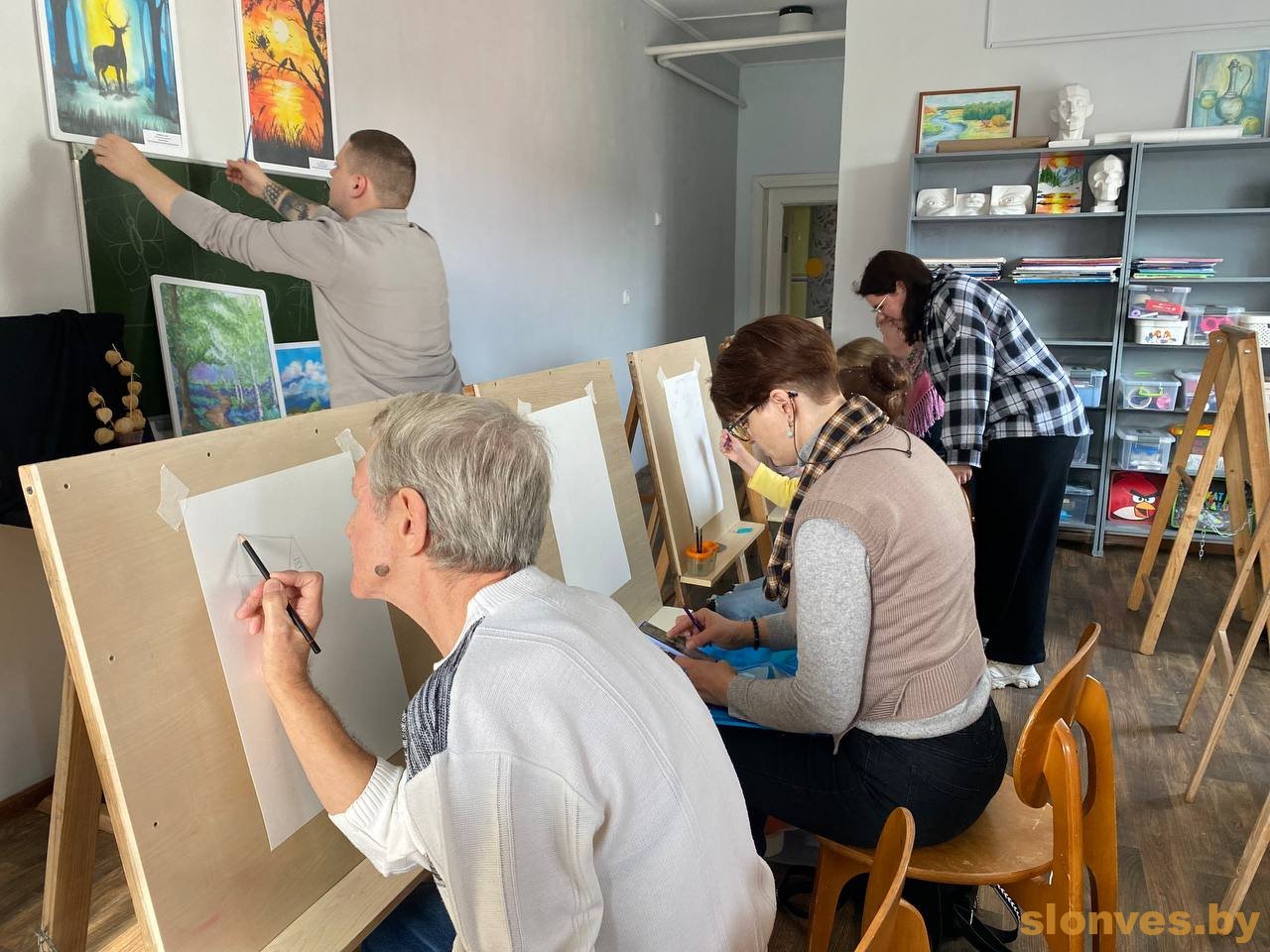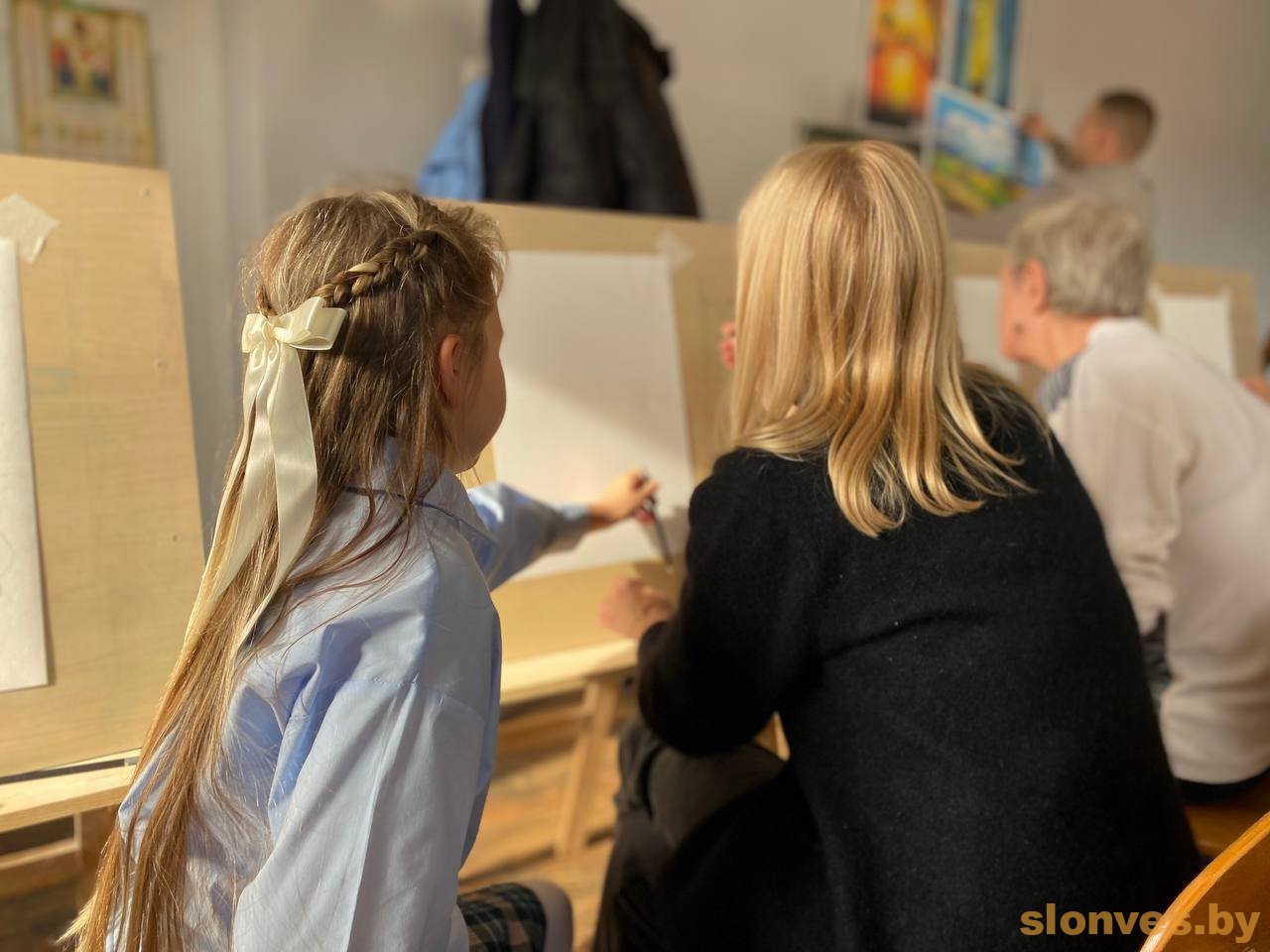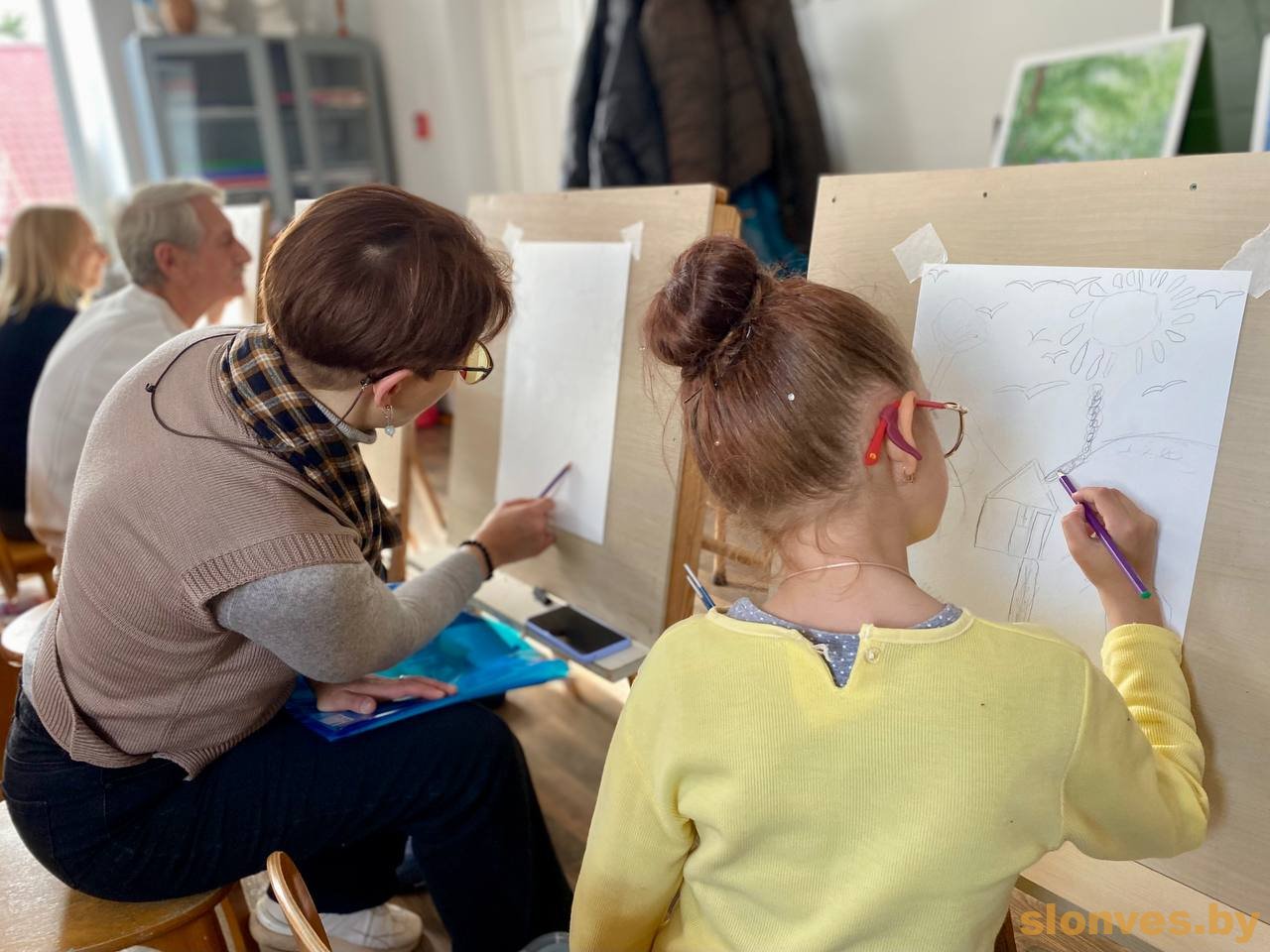 На открытый урок к молодым наставникам Алексею Ивановичу Страковичу и Дарье Алексеевне Карташевич пришли их юные воспитанники вместе со своими родителями, бабушками-дедушками. Несколько поколений объединило творчество – вооружившись карандашами, пастелью или красками, художники делились друг с другом своим видением прекрасного.