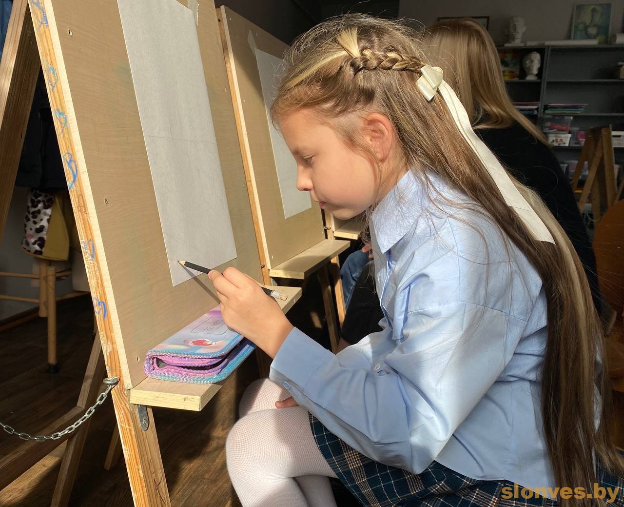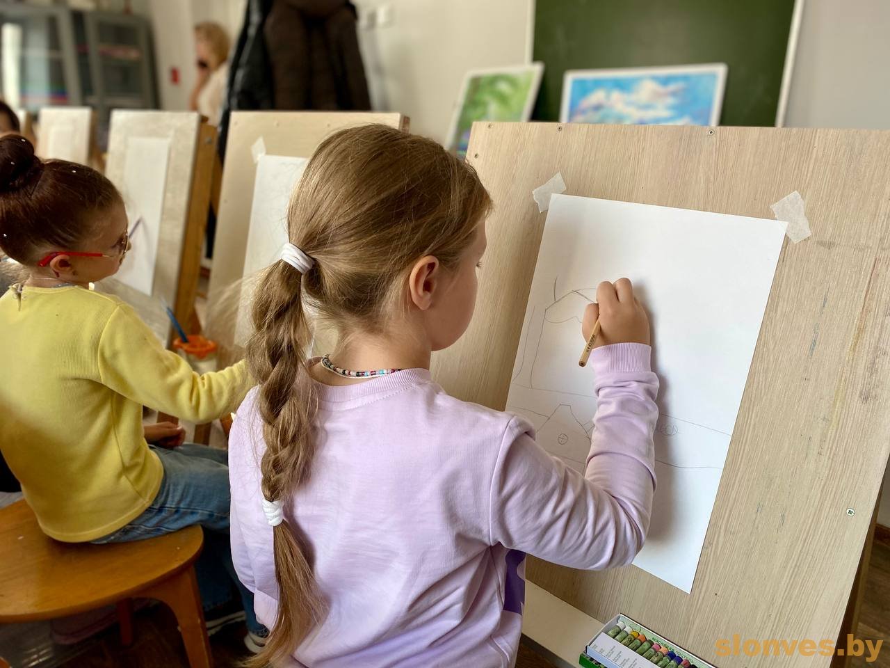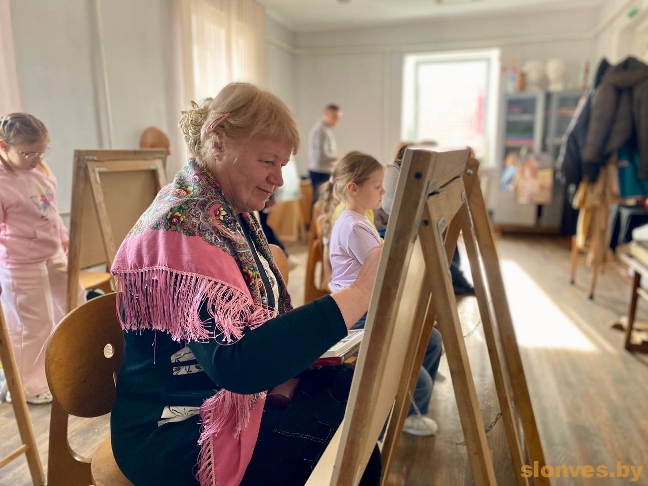 На открытый урок к молодым наставникам Алексею Ивановичу Страковичу и Дарье Алексеевне Карташевич пришли их юные воспитанники вместе со своими родителями, бабушками-дедушками. Несколько поколений объединило творчество – вооружившись карандашами, пастелью или красками, художники делились друг с другом своим видением прекрасного.