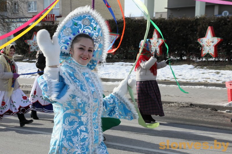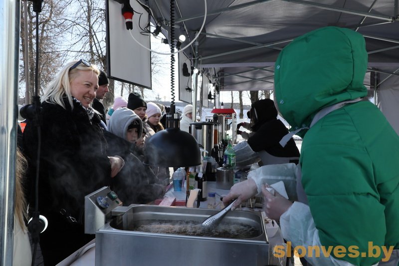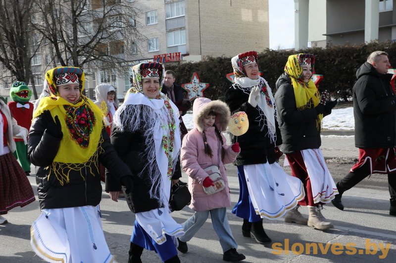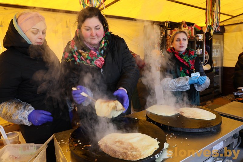 Народными песнями, зажигательными танцами и золотистыми блинами в Слониме отпраздновали Масленицу.
