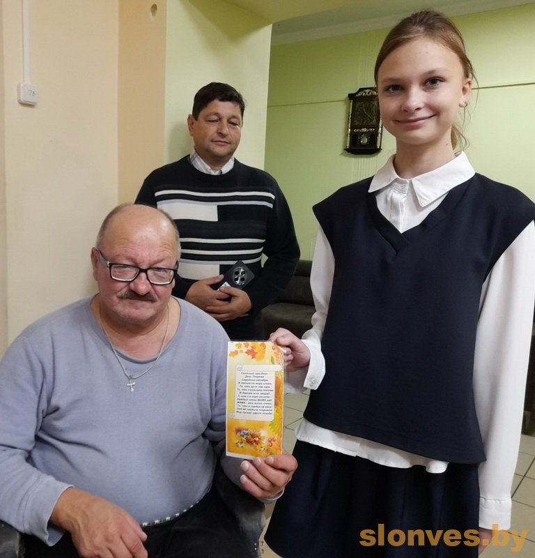 14 октября в День матери в рамках благотворительной акции «Поделись теплом души своей» ответственный секретарь Слонимской районной организации общественного объединения ветеранов Ольга Ивановна Чигрина, педагог-организатор Наталия Николаевна Буранко и учащиеся Новодевятковичской средней школа имени Б.Т. Пищикевича и музыкальный коллектив ветеранов педагогического труда «Сузорье» побывали в гостях у постояльцев дома самостоятельного совместного проживания в агрогородке Партизановка, отделения круглосуточного пребывания граждан пожилого возраста и инвалидов и квартиры самостоятельного проживания в агрогородке Новодевятковичи ГУ «ЦСОН Слонимского района».