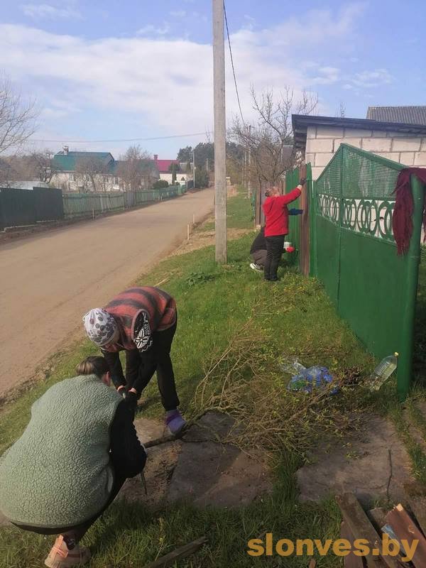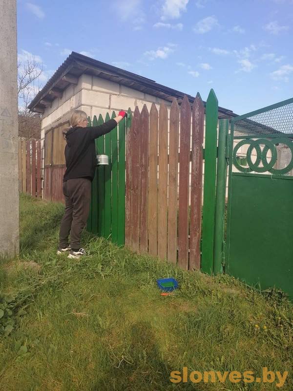В рамках республиканского субботника соцработники привели в порядок придомовую территорию и выполнили ремонт ограждений участка одинокой гражданки, проживающей в агрогородке Жировичи.
