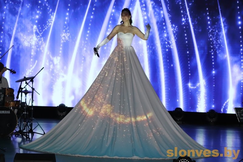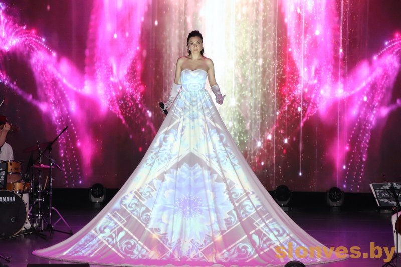 Фишкой концерта стало 3D-платье. Двухметровый наряд очень шел вокалистке, а зрителей впечатлил прекрасными картинами, которые как по волшебству (на самом деле благодаря современным технологиям) возникали на платье.