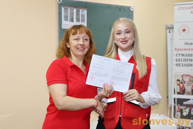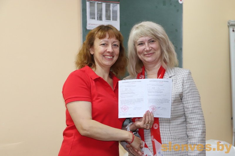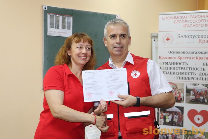 Они прошли соответствующее обучение на базе Слонимской районной организации БОКК, посещали областные и республиканские семинары, а сейчас уже могут не только оказывать первую помощь при различных чрезвычайных ситуациях, но и преподавать полученные знания, в том числе и посредством мастер-классов. Сертификат получили представители Слонимского государственного медколледжа, Слонимской ЦРБ и Слонимского государственного колледжа.