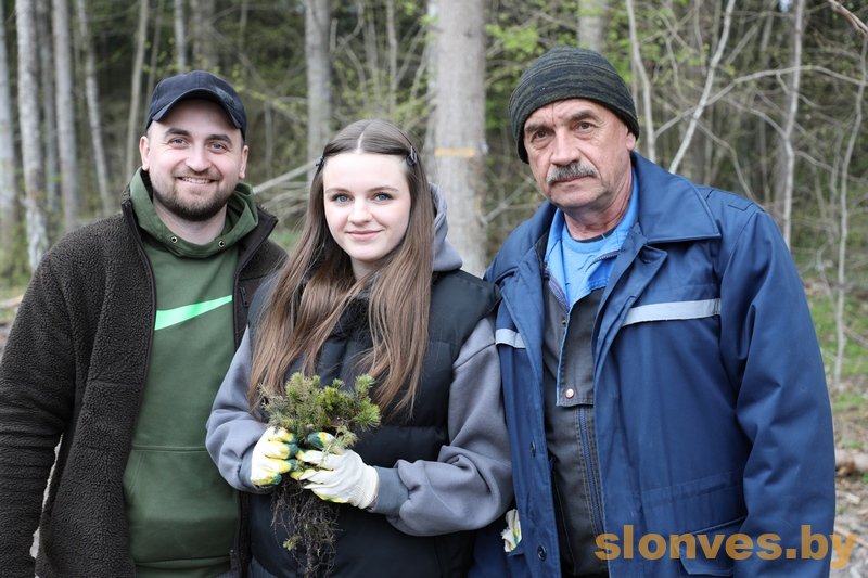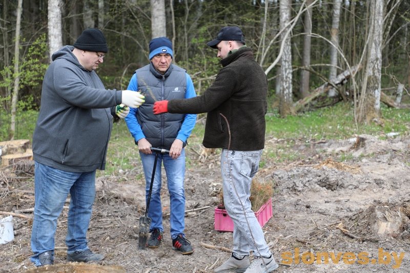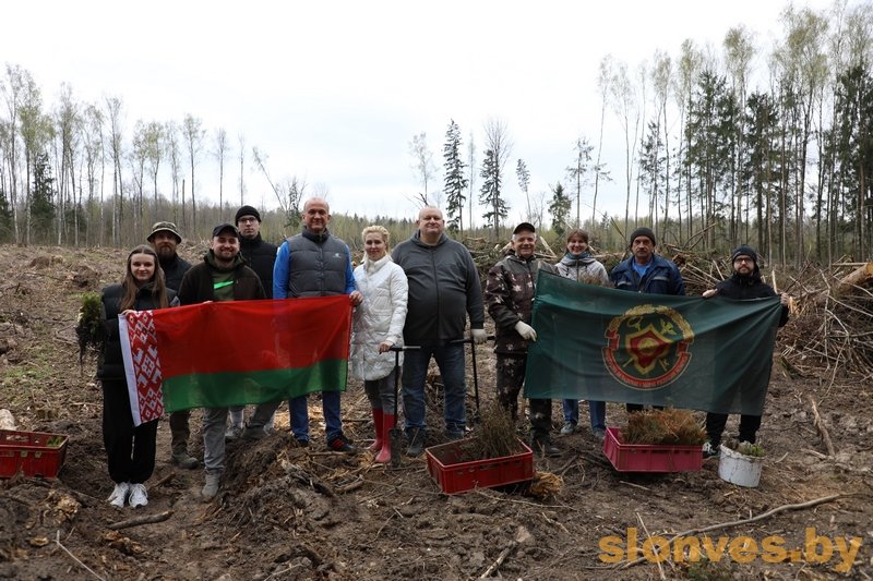 В рамках республиканского субботника работники инспекции министерства по налогам и сборам по Слонимскому району во главе с начальником Вадимом Ивановичем Лайшей высаживали ель, лиственницу и ольху в восемнадцатом квартале Жировичского лесничества.