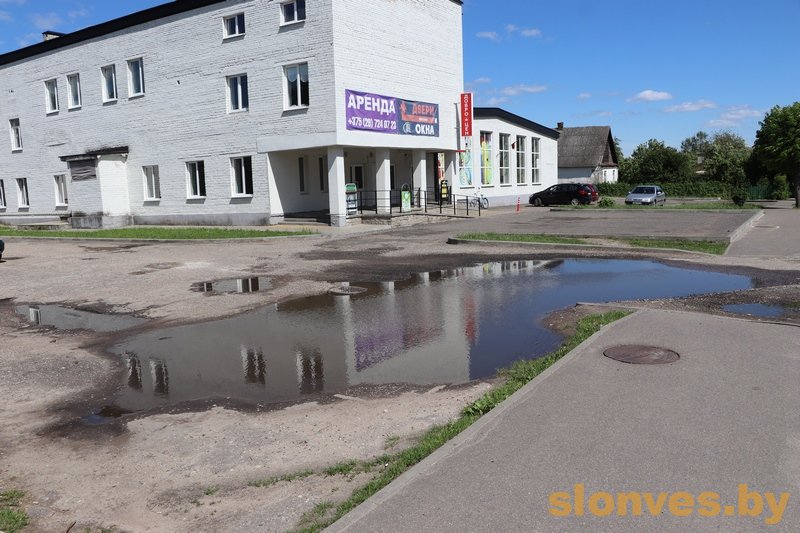 В редакцию газеты неоднократно поступали жалобы от жителей улице Комсомольская на то, что в дождливые дни между магазинами «Маяк» и «Доброцен» разливается большая лужа. В результате, пешеходы вынуждены обходить воду, а автомобилисты рискуют испачкать свои машины. Постоянным читателям нашей газеты уже известно, что бывшую баню выкупило ООО «Органик Лэнд», а соседнее здание принадлежит Дмитрию Васильевичу Жуковцу. И граница земельных участков, принадлежащих данным собственникам, проходит по середине знаменитой лужи. В мае мы вновь поднимали этот вопрос. Но, к сожалению, «воз и ныне там». Отметим, что согласно законодательству Республики Беларусь, владельцы земельных участков, собственники торговых объектов, обязаны поддерживать их в надлежащем состоянии и обеспечивать безопасность и комфорт для всех пользователей. Наши читатели обеспокоены равнодушием и отсутствием конкретных мер со стороны собственников по устранению данной проблемы. Они говорят, что если владельцы торговых точек не заботятся о покупателях, экономят на элементарном комфорте, то зачем давать выручку таким магазинам. К счастью, в Слониме есть торговые центры, где территория благоустроена и все делается для удобства людей.