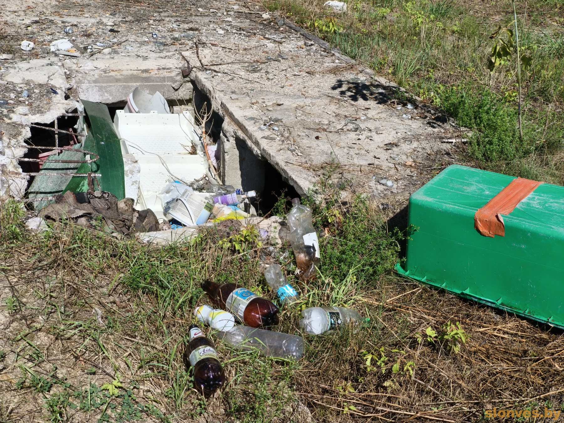 Разбросанные по территории ПЭТ-бутылки, пластиковые пакеты и прочие отходы свидетельствуют о том, что этот пустырь – место неоднократных встреч асоциальных личностей. Здесь же находятся подвальные помещения, доверху заполненные мусором.