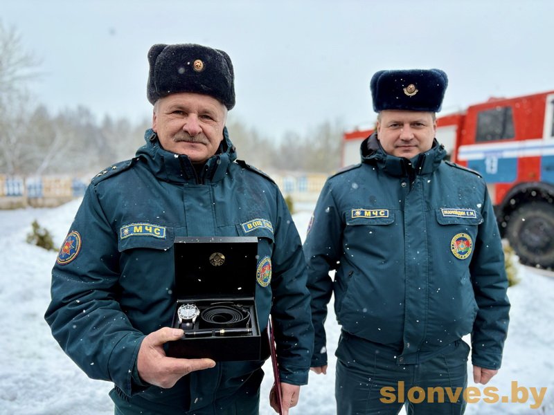 В торжественной обстановке на заслуженный отдых проводили старшего инструктора-спасателя пожарного аварийно-спасательного поста № 13 Слонимского райотдела МЧС Виктора Ворону.