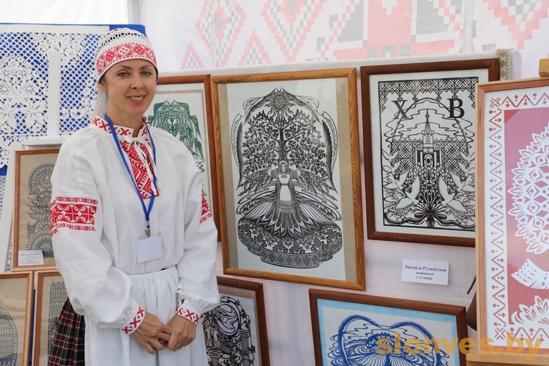 Людмила Рутковская представляет на Дне белорусской письменности произведения, причисленные к нематериальному культурному наследию. Людмила выполняет свои работы в традиционном белорусском искусстве вытинанки.
