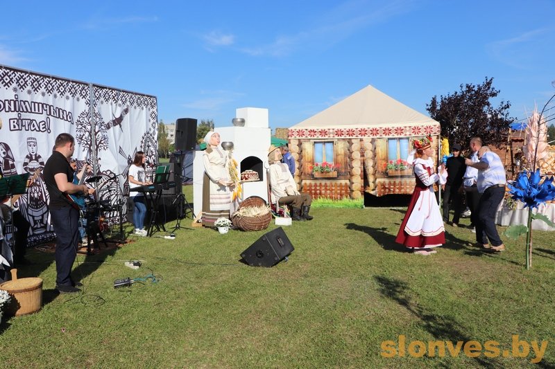 Зажигательные белорусские песни народного ансамбля «Славяночка» и популярные от группы «Райцентр» в праздничный день звучат на слонимском подворье, для гостей фестиваля здесь поют и солисты районного центра культуры. Независимо от жанра и стиля, талантливые исполнители смогли завоевать сердца зрителей своим профессионализмом и энергией.