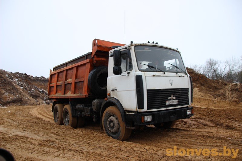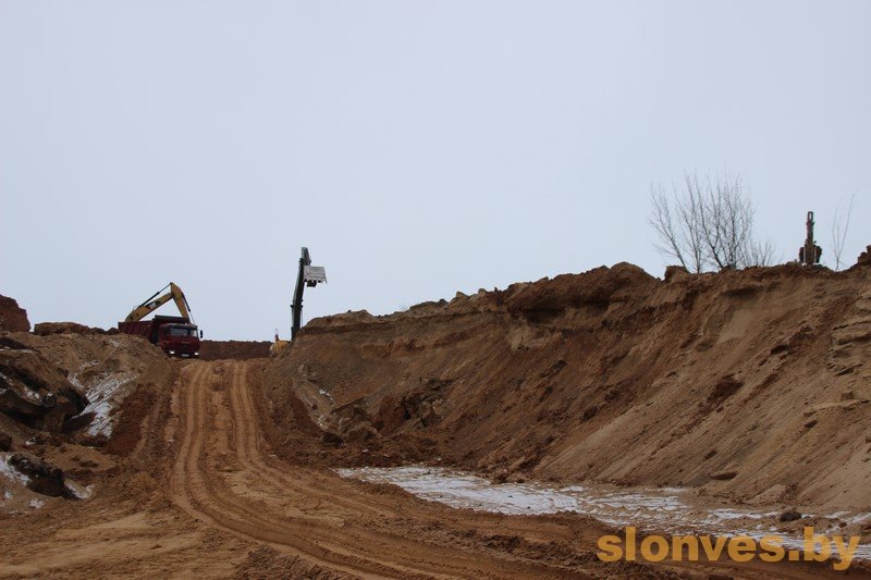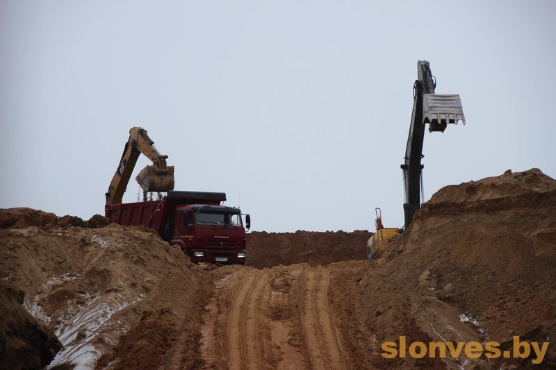Видно, что грузовики регулярно прибывают на место, где идет забор грунта. Работы, которые осуществляет подрядная организация «Дорожно-строительное управление № 65» ДСТ-6, ведутся в рамках утвержденного проекта. Имеется соответствующее разрешение Госстройнадзора. Специалистами УКС Слонимского района осуществляется технический контроль.