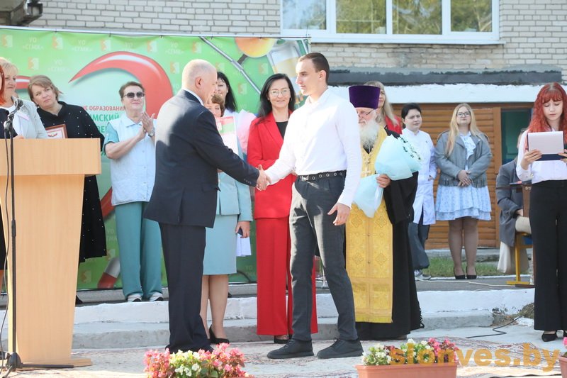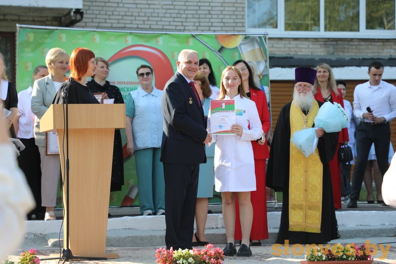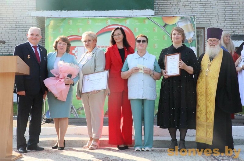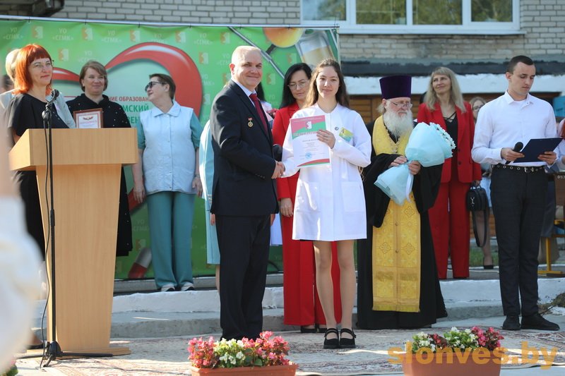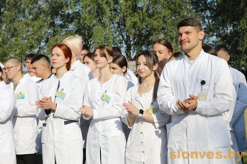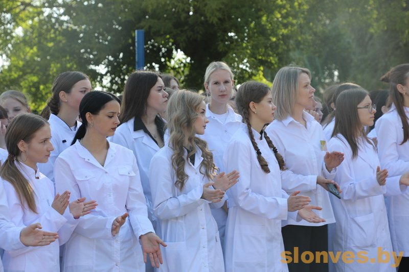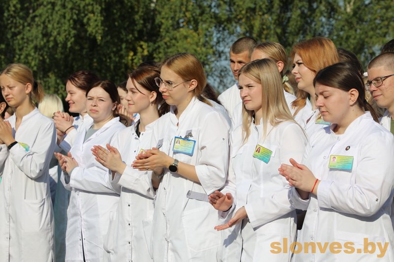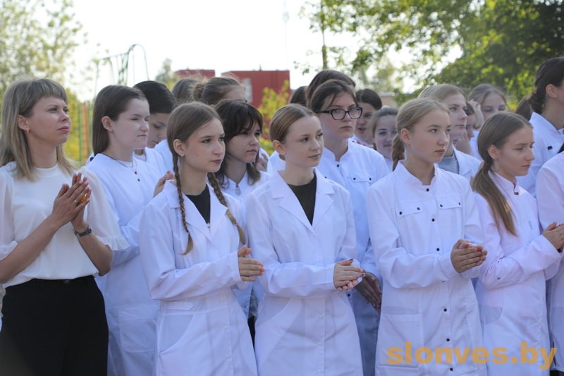 Будущих медицинских работников также приветствовали почетные гости — заместитель председателя Слонимского райисполкома Тереса Вацлавовна Юшкевич, главный врач учреждения здравоохранения «Слонимская центральная районная больница» Наталья Ивановна Ризванович, иерей Петр Ткаченко, второй секретарь РК ОО БРСМ Ирина Владимировна Гурская.