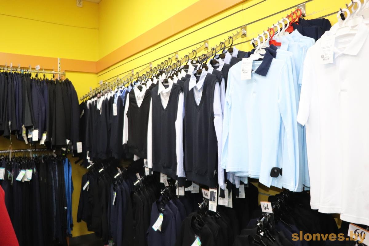 Самым популярным магазином, куда перед началом учебного года отправляются школьники и их родители, остается «Апельсин». Практически все стойки магазина увешаны школьной формой от отечественных фабрик – «Калинка», «Bell Bimbo», Жлобинская швейная фабрика и др. Большой выбор блузок и сорочек для мальчиков от бренда «Элис». В одном размерном ряду примерно около 10 моделей.