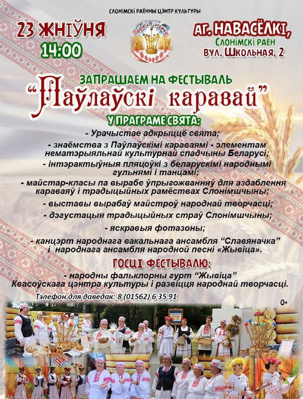 23 августа уже в седьмой раз в агрогородке Новоселки Слонимского района пройдет фестиваль «Павловский каравай», цель которого — передать традицию выпечки уникального местного каравая, имеющего статус нематериального культурного наследия.