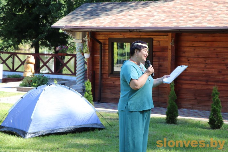 Творческое приветствие направили участникам турслета наши замечательные артисты – Дарья Даниловна Мелкумян и Надежда Петровна Салейко. Настроение для дружной кампании создала ведущая Ольга Ивановна Шлыкович.