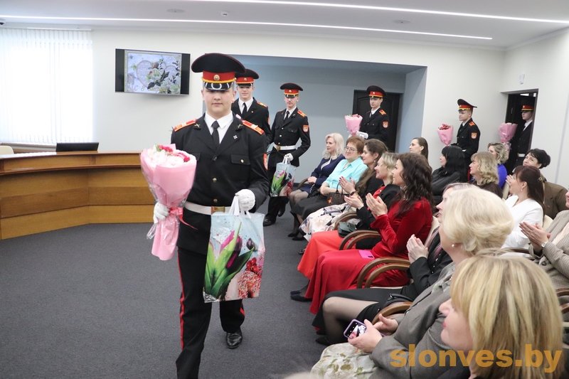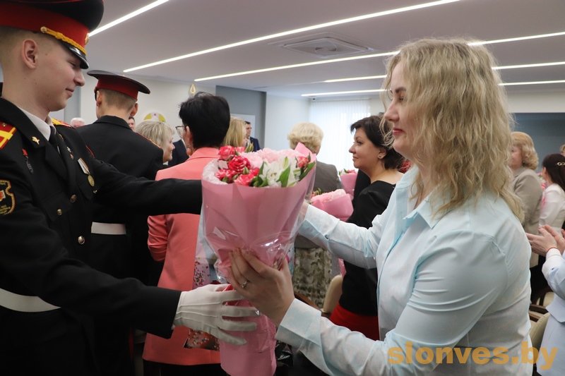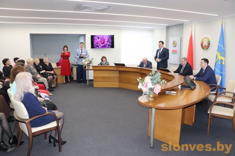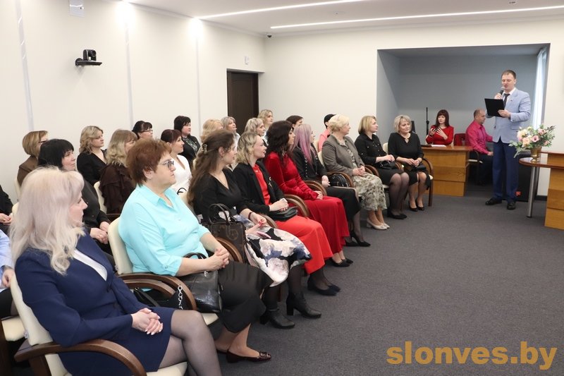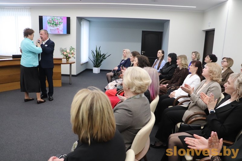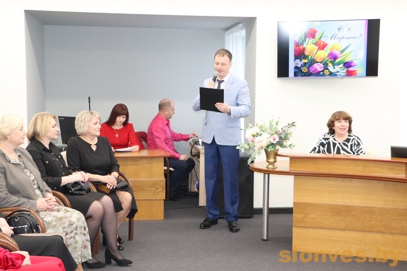 С наступающим праздником женщин поздравили управляющий делами Слонимского райисполкома Вячеслав Александрович Апанович, начальник отдела организационно-кадровой работы Валерий Васильевич Бадей, председатель суда Слонимского района Вадим Игоревич Дубровский и заместитель председателя Слонимского райисполкома Тереса Вацлавовна Юшкевич.