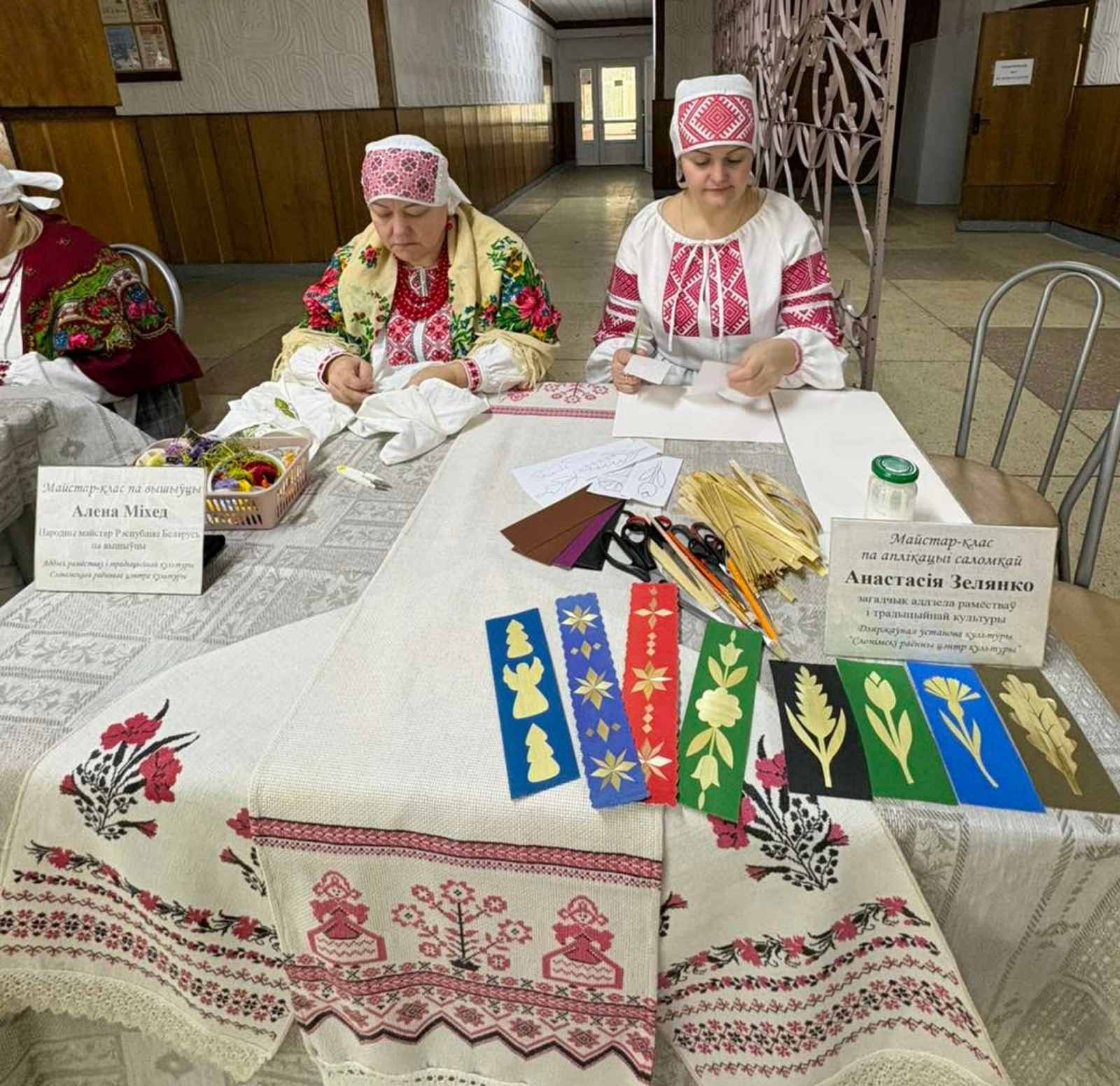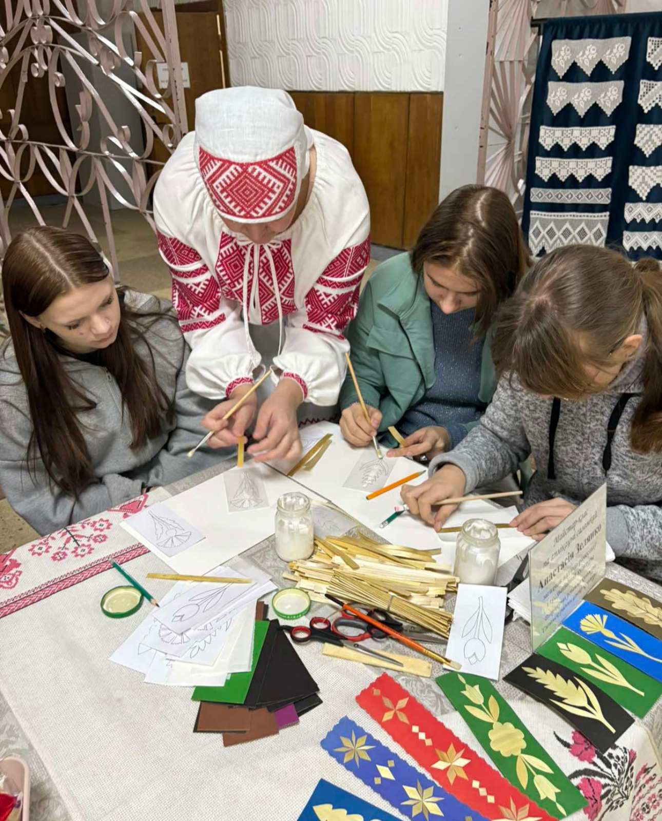 Навучэнцы з зацікаўленасцю разглядалі калекцыі творчых работ і з ахвотаю прымалі ўдзел у майстар-класах па вышыўцы, аплікацыі саломкай, карункапляценні, вырабе абярэгавай лялькі, роспісе па шкле, мастацкай кераміцы.