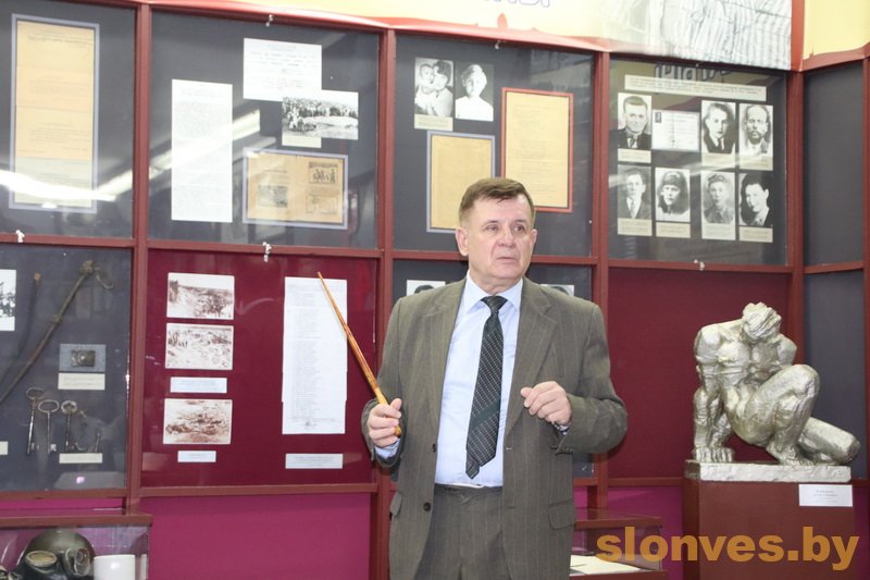 Для ребят научный сотрудник музея Сергей Яковлевич Бурсевич провел экскурсию по экспозиции «Геноцид населения слонимской земли в годы Великой Отечественной войны», где представлены фотографии, фиксирующие моменты преступлений фашистов, ключи от слонимских тюрем, личные вещи замученных и расстрелянных в годы войны земляков.