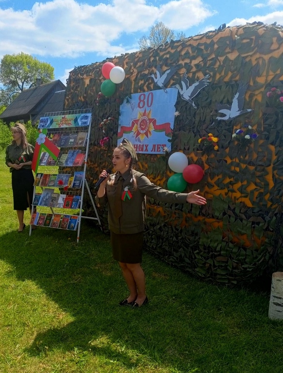 В рамках общеобластного патриотического марафона «ДОРОГАМИ ОСВОБОЖДЕНИЯ — 80«, специалисты сектора нестационарного обслуживания организовали военный привал «Во славу освобождения!» в деревнях Нагуевичи и Хорошевичи Слонимского района.