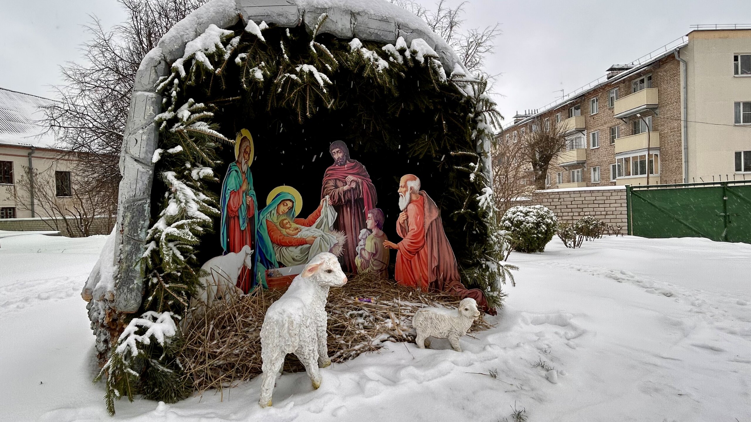 На территории Свято-Троицкого собора накануне одного из главных православных праздников появился вертеп с настоящими животными.